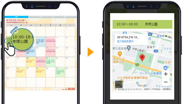 ※ダウンロードした画像では出店場所をタップして地図を表示させることはできません。