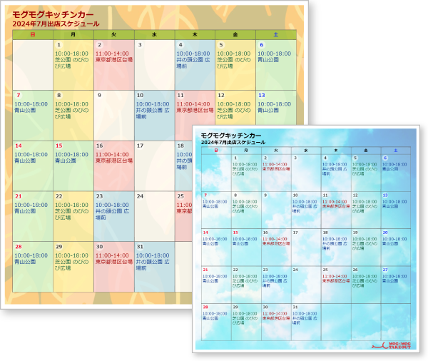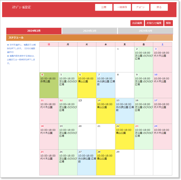 ひと月の出店スケジュールを分かりやすくお知らせ