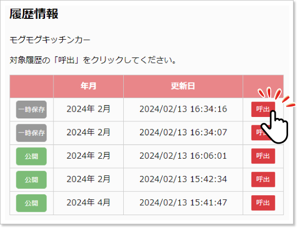 ※履歴は最新更新分から最大5つまで残ります。